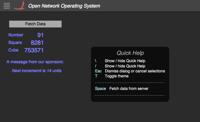 As you will see in the code (in a later section), we created a key-binding with the space-bar (to fetch data); it is thus listed in the quick help panel.