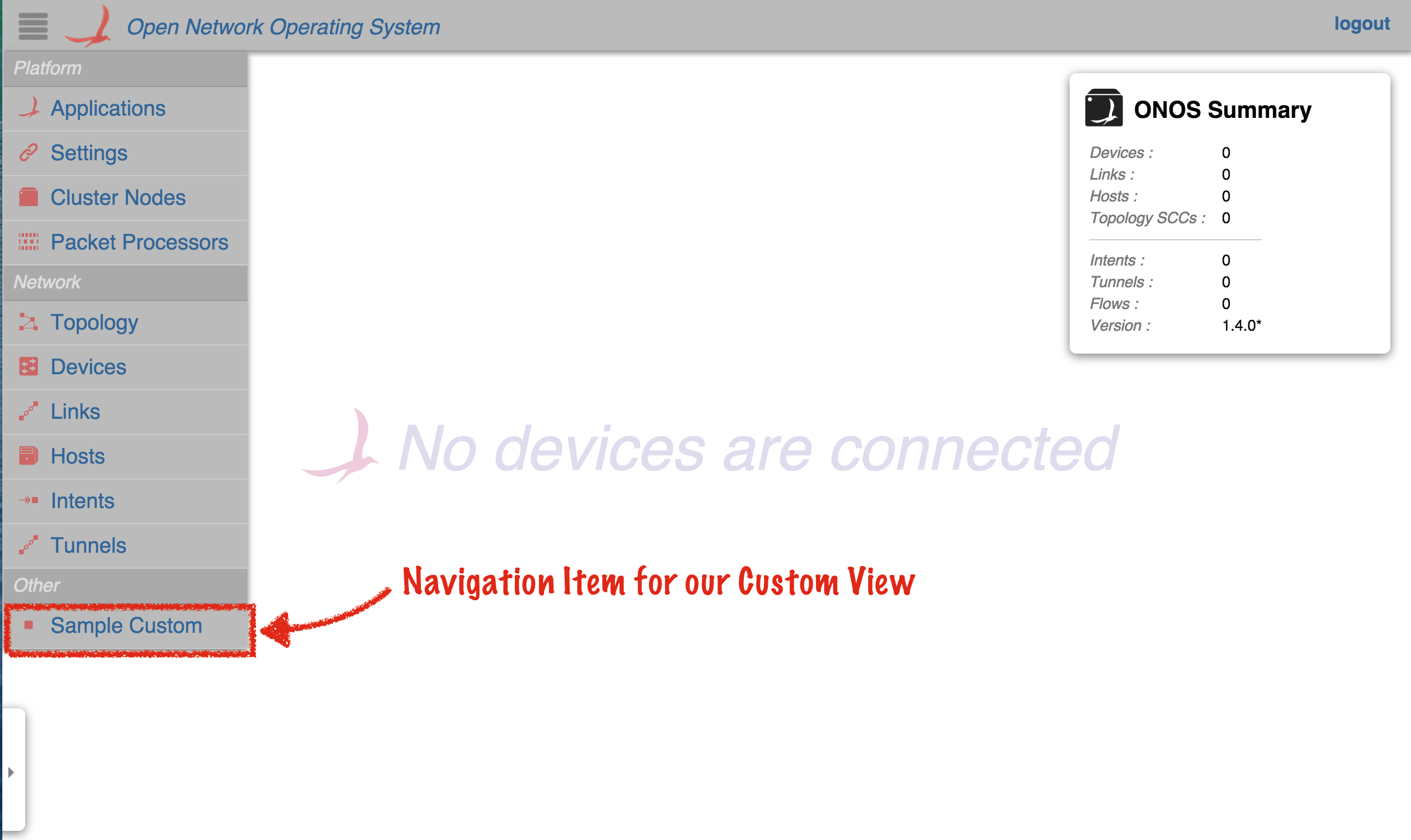 Clicking on this item should navigate to the injected sample custom view: