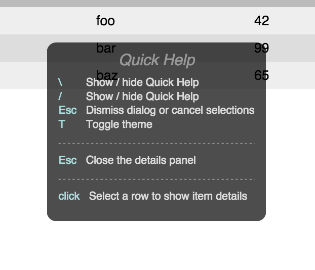 Now we use the key service to bind our callback to the ESC key, and also provide hints for the Quick Help panel: