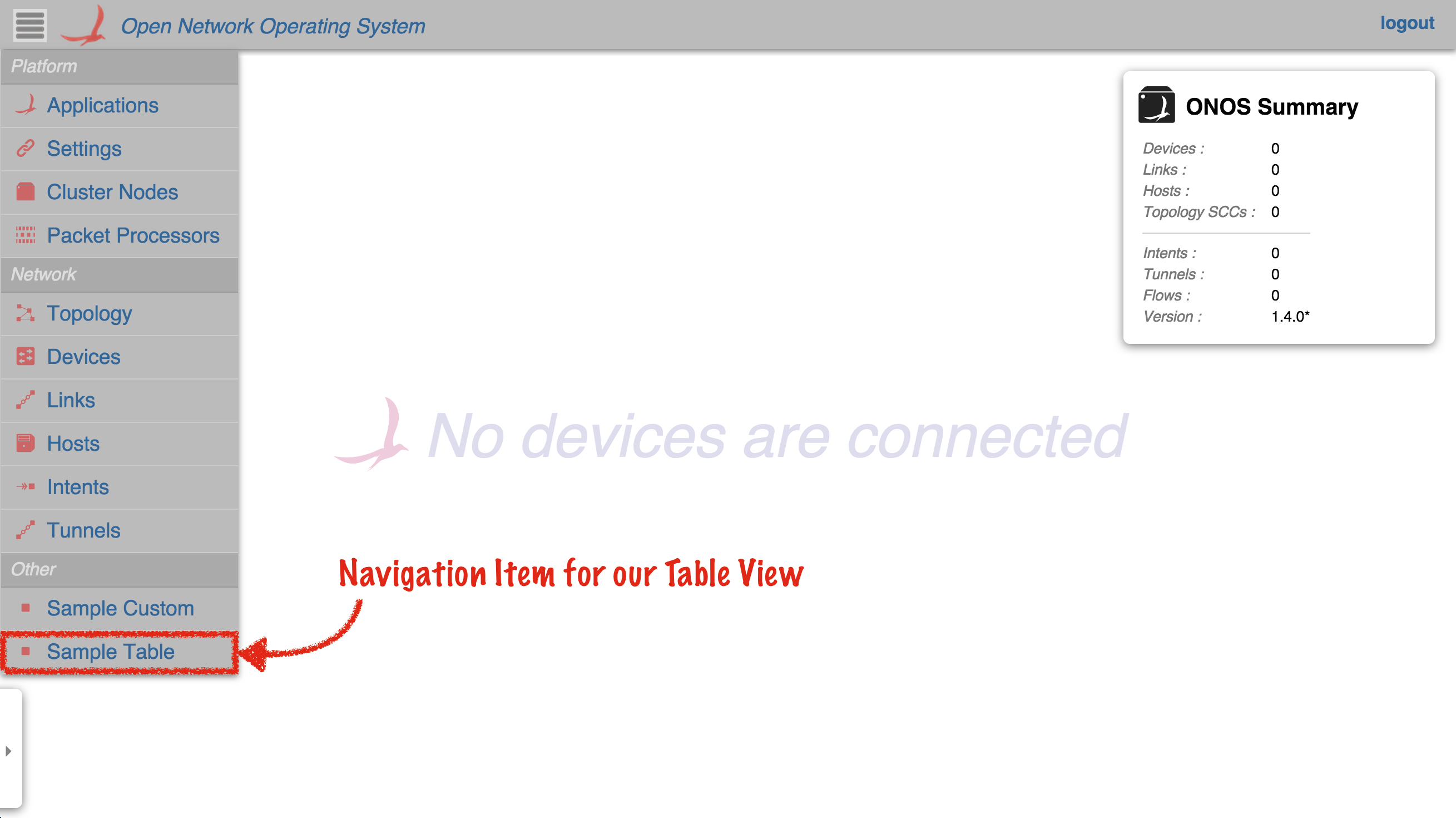 This tutorial will step you through the process of creating an application that does just that – injects a tabular view into the ONOS GUI.